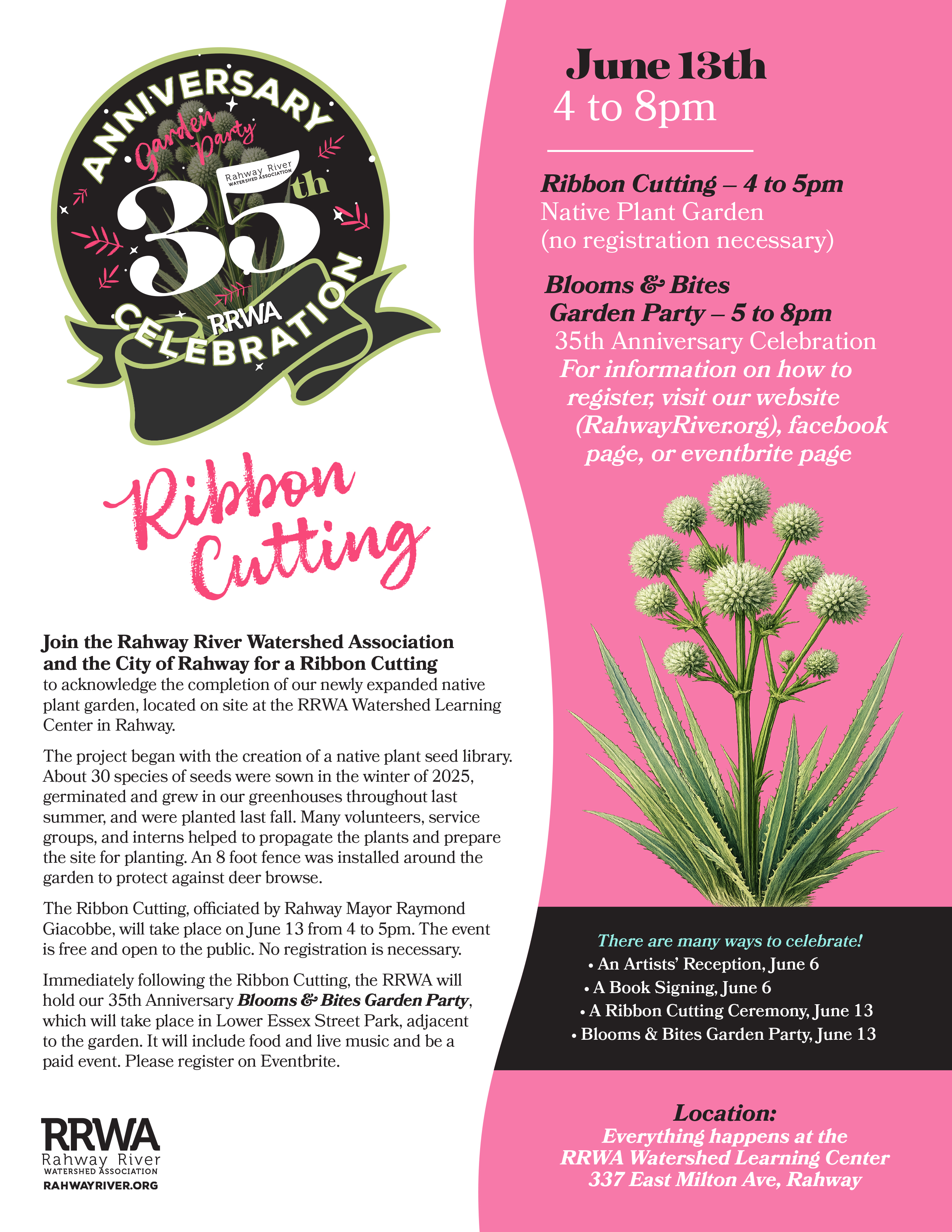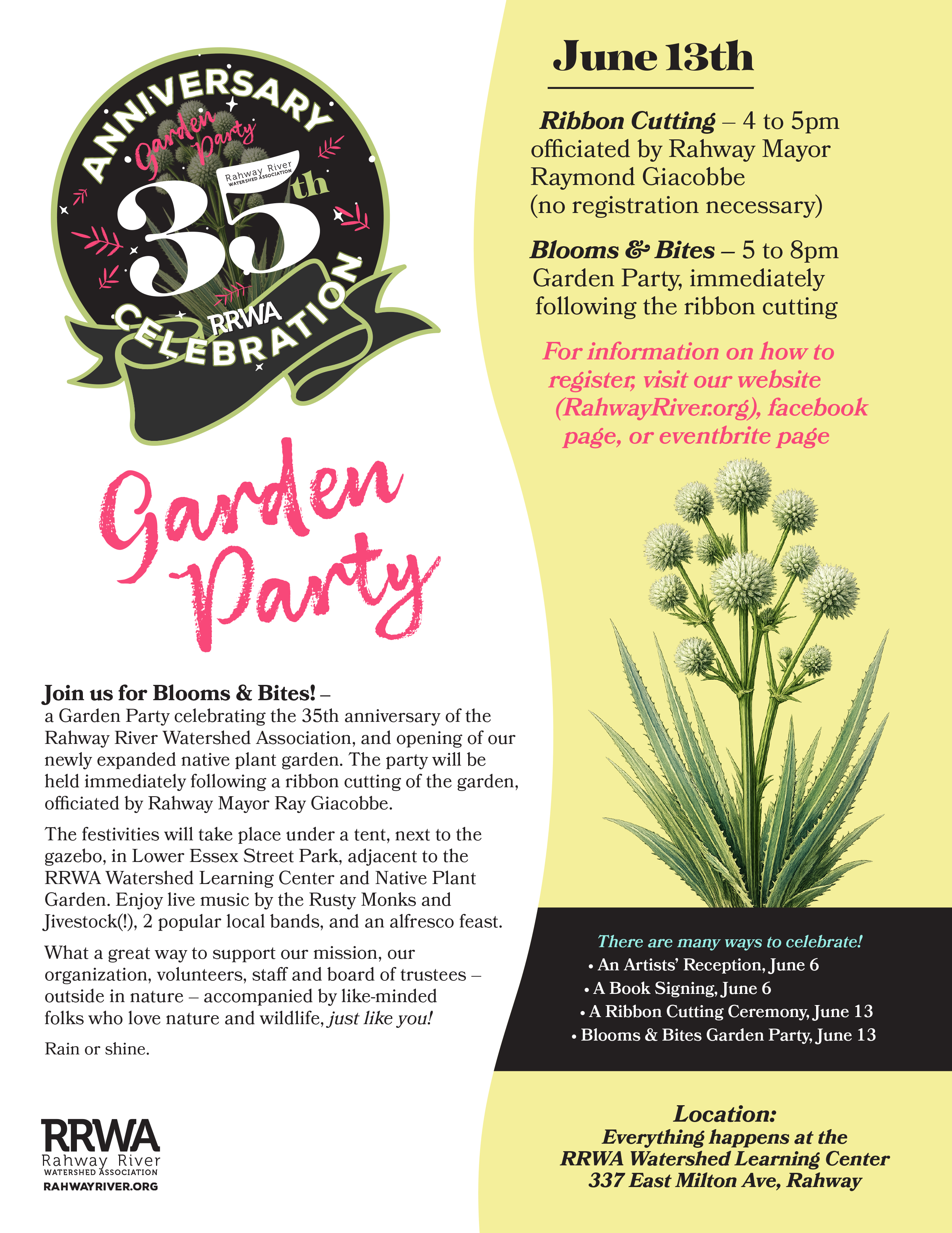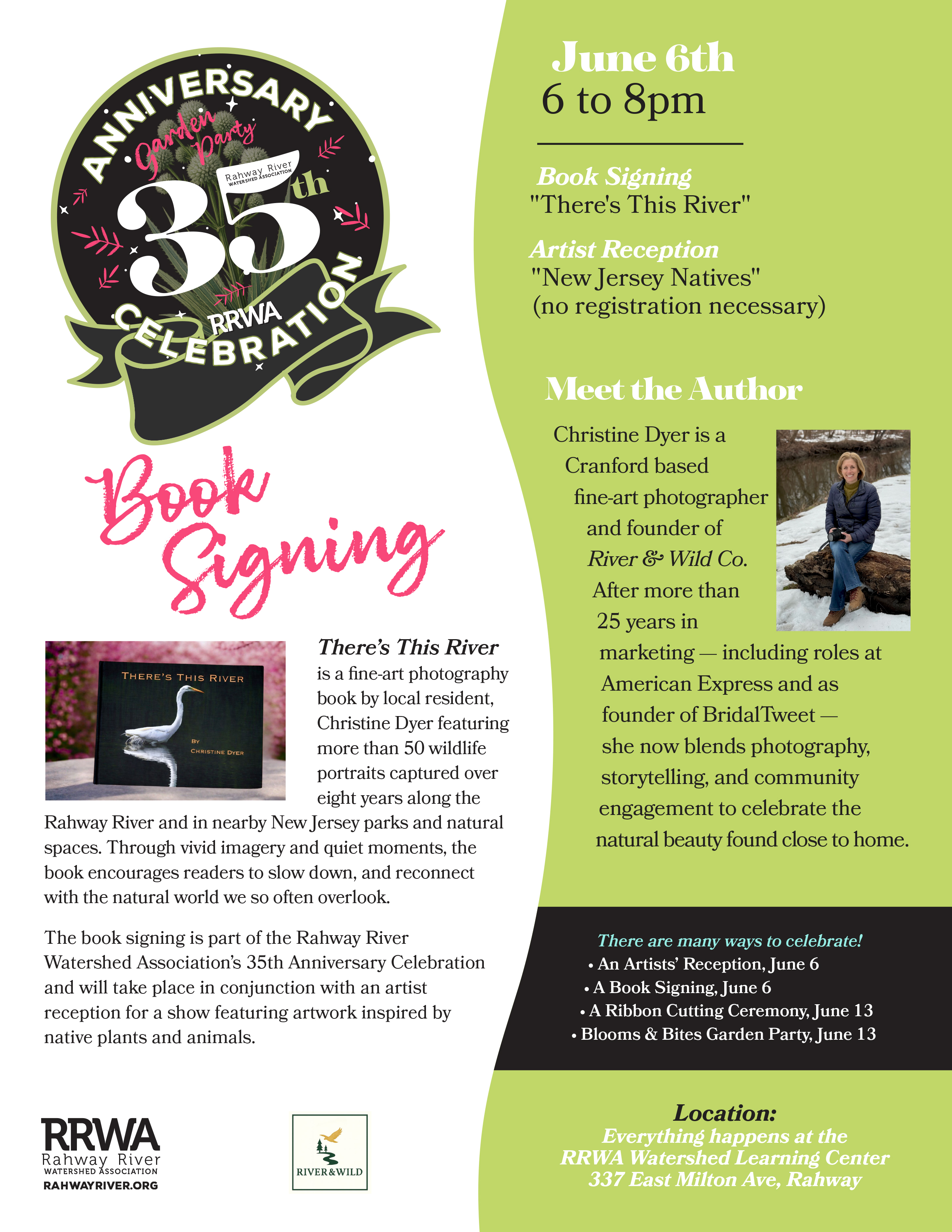 Please scroll down for more information about RRWA's 35th Anniversary Celebration list of events