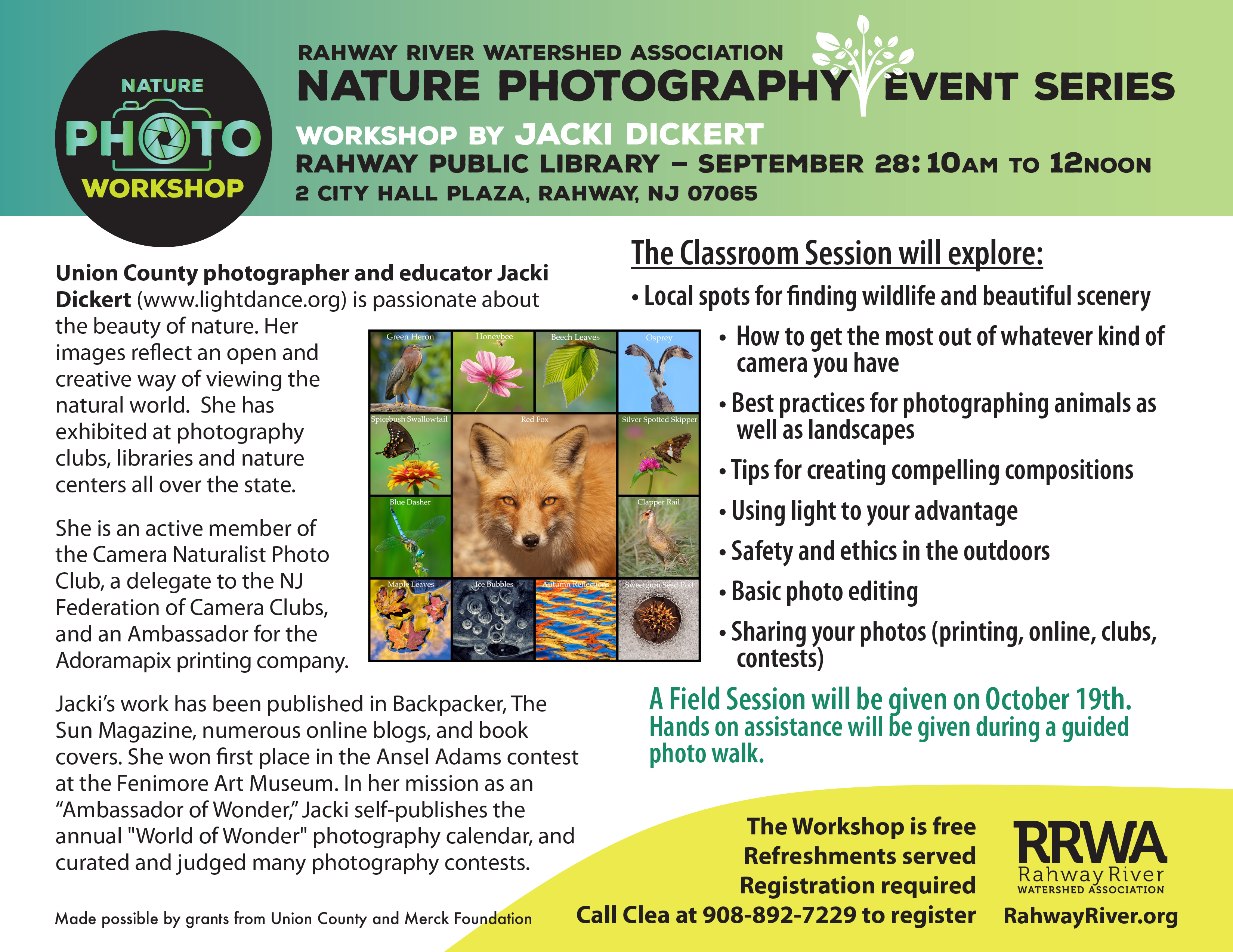 For more information and to RSVP please call RRWA program manager Clea Carchia at 908-892-7229.